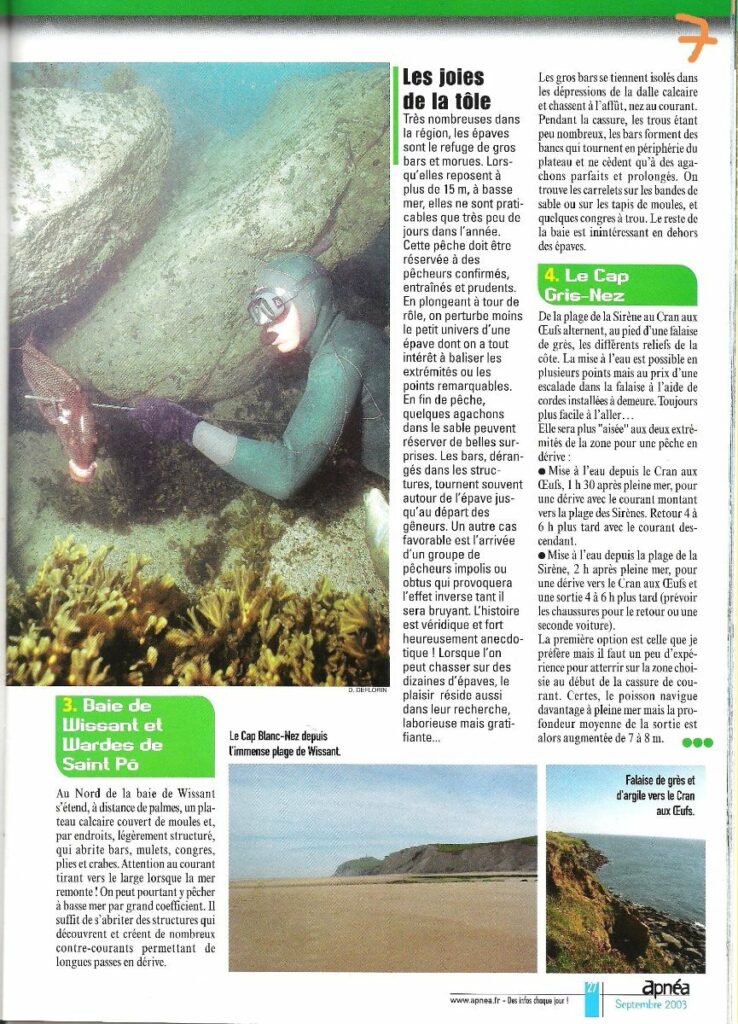 Les effets de caps font que la visibilité y est vite très mauvaise. Dès que la mer est un tant soit peu agitée, il vaut mieux se rabattre sur Audresselle. Il y a par contre un peu moins de filets et de casiers. Le danger vient plus des plaisanciers lors des belles journées, qui pêchent à la traine sans faire trop attention à ce qu’il se passe devant eux. Restez attentif aux bruits de moteur !