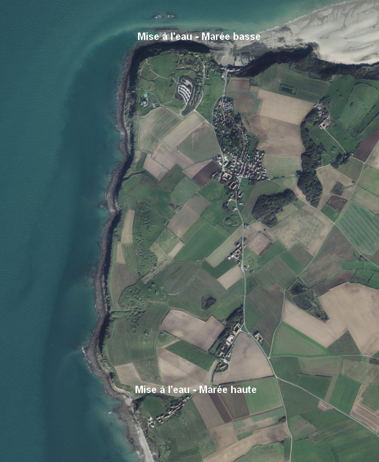A marée haute, la mise à l’eau s’effectue au lieu dit le “cran aux oeufs”, 1h30 après l’heure de marée haute. L’étale survenant 3h après l’heure de marée haute, vous partez pour 1h30 de dérive. Généralement cela vous emmène au niveau du phare du CROSS.